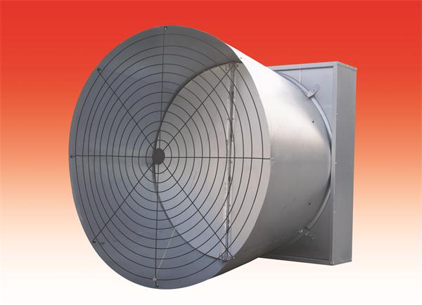 喇叭口风机是在50′标准风机的基础上衍生开发的具有更强功效的风机。带拢风筒的设计能增大禽/猪舍负压,
